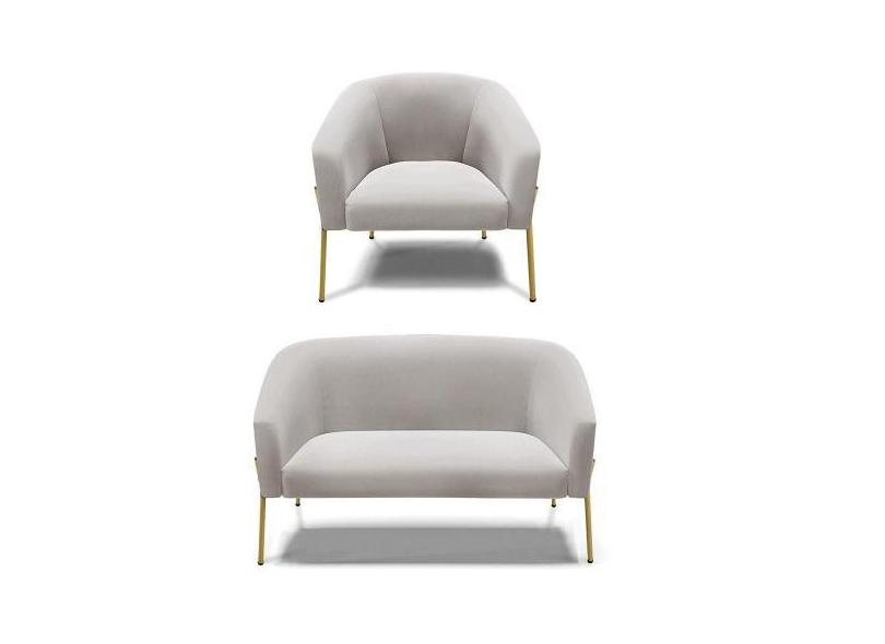 Sofá Namoradeira E Poltrona Pé De Ferro Dourado Stella Veludo D03 - D'