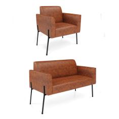 Sofá Namoradeira e Poltrona Pé de Ferro Preto Marisa Corano Nozes D03 - D'Rossi
