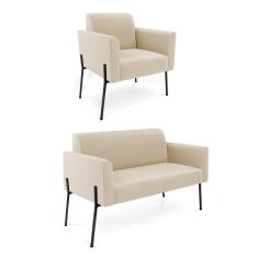 Sofá Namoradeira E Poltrona Pé De Ferro Preto Marisa Suede Bege D03 - D'rossi