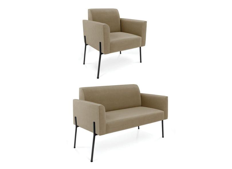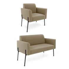 Sofá Namoradeira e Poltrona Pé de Ferro Preto Marisa Suede Marrom Rato D03 - D`Rossi