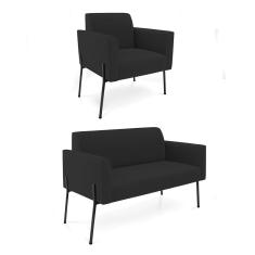 Sofá Namoradeira e Poltrona Pé de Ferro Preto Marisa Veludo Preto D03 - D'Rossi