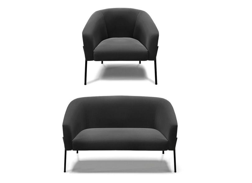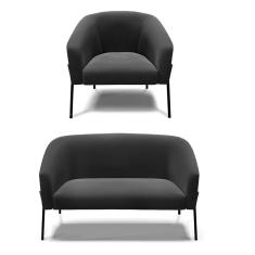 Sofá Namoradeira E Poltrona Pé De Ferro Preto Stella Suede Preto D03 - D'rossi
