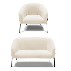 Sofá Namoradeira E Poltrona Pé De Ferro Preto Stella Veludo Bege D03 - D'rossi