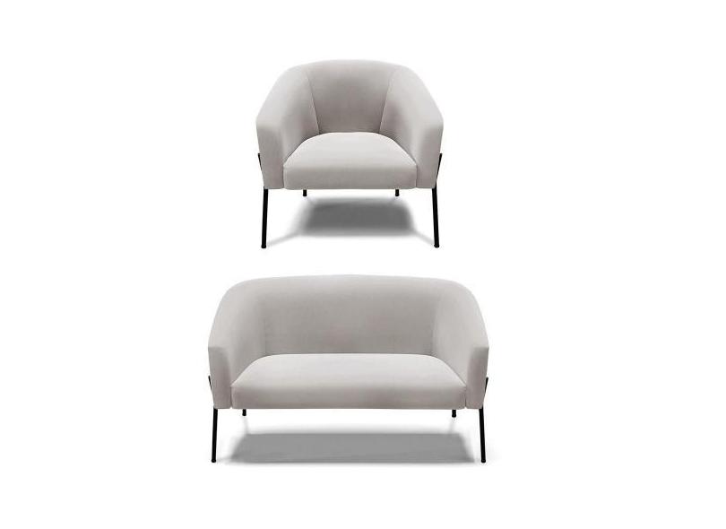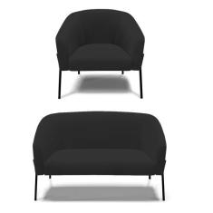 Sofá Namoradeira E Poltrona Pé De Ferro Preto Stella Veludo D03 - D'ro