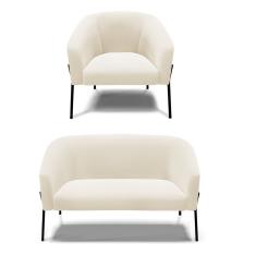 Sofá Namoradeira E Poltrona Pé De Ferro Preto Stella Veludo D03 - D'rossi Cor Bege