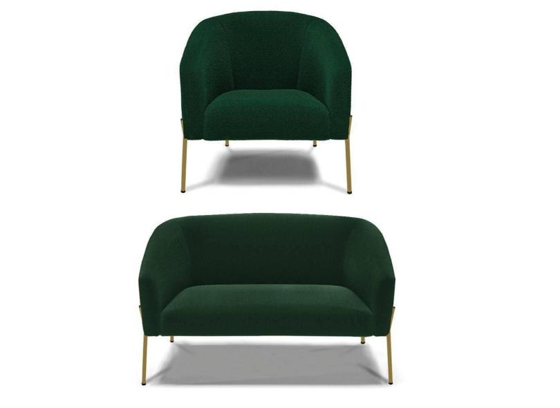 Sofá Namoradeira E Poltrona Pé Ferro Dourado Stella Bouclê D03 - D`rossi Cor Verde