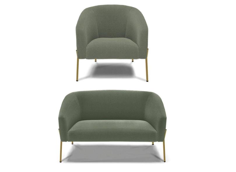 Sofá Namoradeira e Poltrona Pé Ferro Dourado Stella Bouclê Menta D03 - D`Rossi
