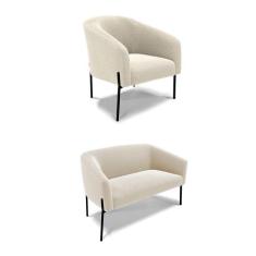 Sofá Namoradeira e Poltrona Pé Ferro Preto Stella Bouclê D03 - D`Rossi