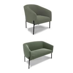 Sofá Namoradeira E Poltrona Pé Ferro Preto Stella Bouclê Menta D03 - D`rossi