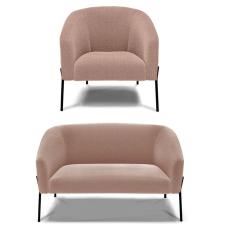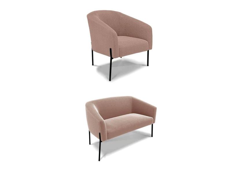 Sofá Namoradeira e Poltrona Pé Ferro Preto Stella Bouclê Rosê D03 - D`Rossi