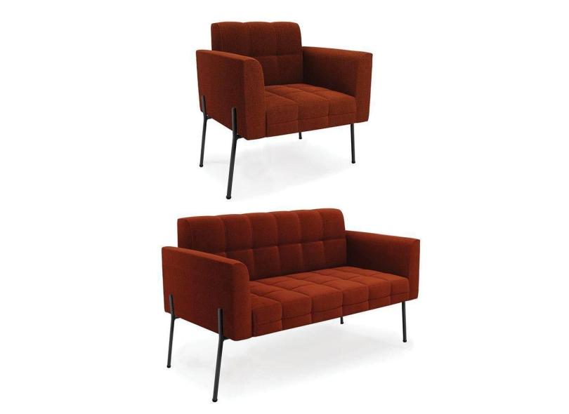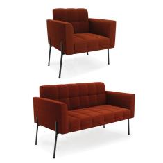 Sofá Namoradeira E Poltrona Pé Ferro Pto Elisa Bouclê Terra D03 - D`rossi