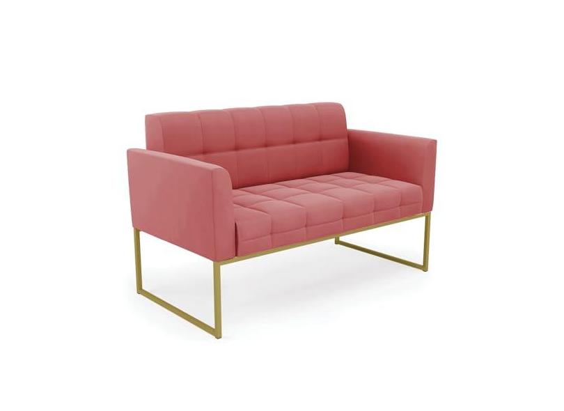 Sofá Namoradeira Elisa Suede Rosê Base Metálica Industrial Dourado - D'Rossi