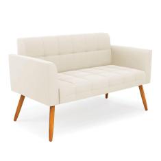 Sofá Namoradeira Elisa Veludo Bege Pés Palito Castanho - D'Rossi