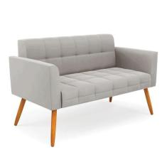 Sofá Namoradeira Elisa Veludo Cinza Pés Palito Castanho - D`rossi