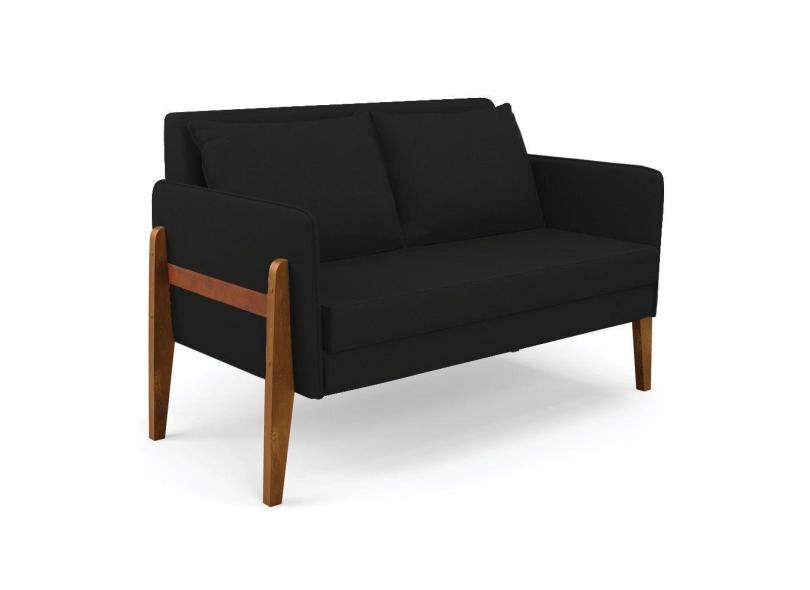 Sofá Namoradeira Lana Linho Preto A79 Base De Madeira - D`rossi