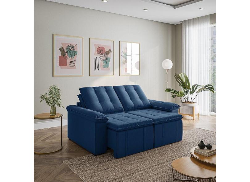 Sofá Palmeira Retrátil Reclinável sem Caixa 3 Lugares 180cm Veludo com Molas CabeCasa MadeiraMadeira Azul