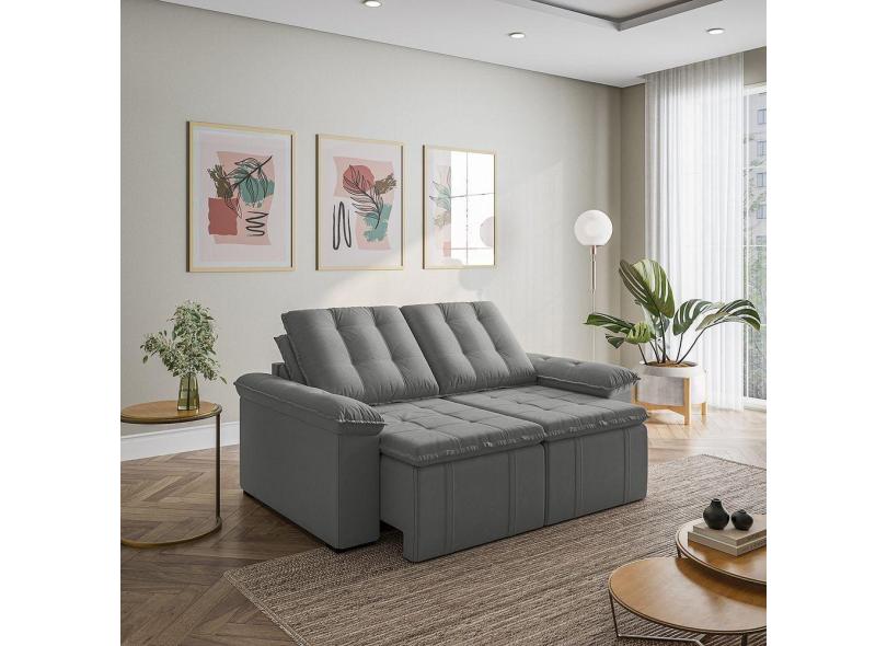 Sofá Palmeira Retrátil Reclinável sem Caixa 3 Lugares 180cm Veludo com Molas CabeCasa MadeiraMadeira Cinza