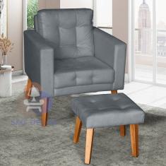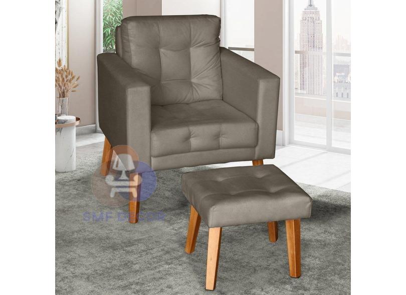 Sofá/Poltrona/Cadeira Decorativa Glamour Dubai com Puff e pés em Madeira