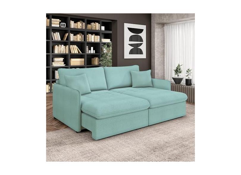 Sofá Reclinável e Retrátil Gandalf Bipartido 174cm Caixa Zero com Almofadas Bouclê Azul G33 - Gran Belo