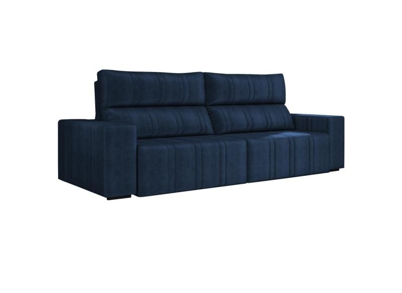Sofá Retrátil 234 Cm Sala De Estar Leonel Suede Azul Marinho - Gran Belo