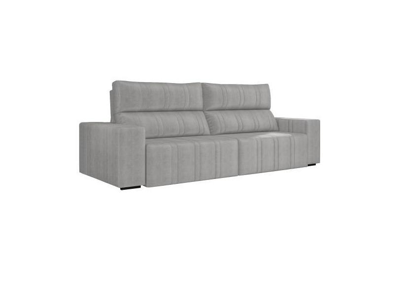 Sofá Retrátil 254 Cm Sala De Estar Leonel Suede Cinza G52 - Gran Belo
