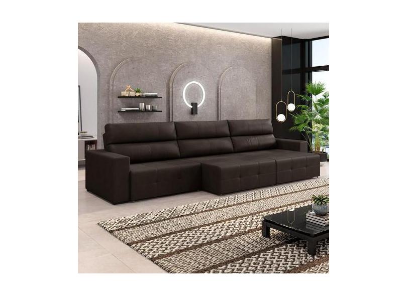Sofá Retrátil 5 Lugares 374cm 3 Módulos Nero Couro Marrom G52 - Gran B