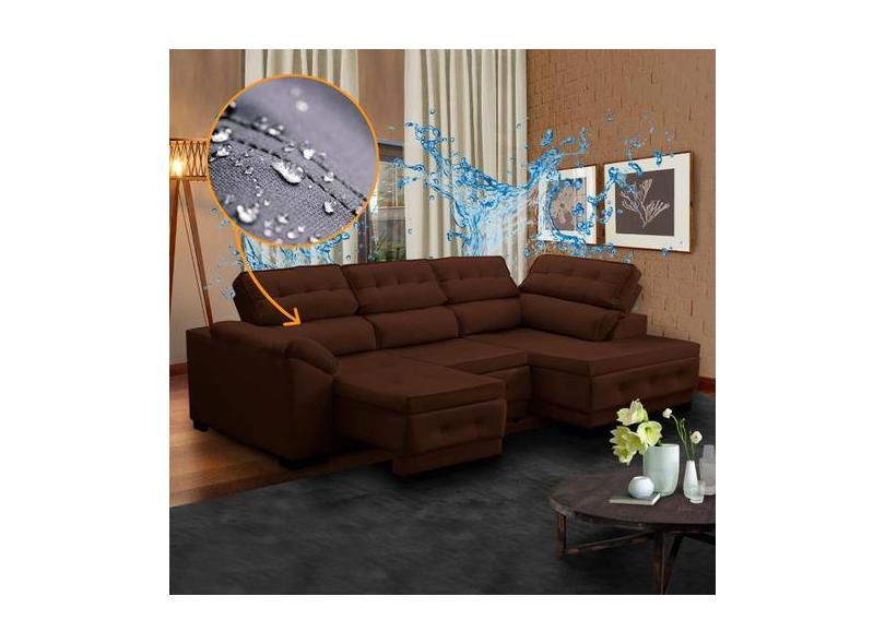 Sofá Retrátil 5 Lugares Canto Chaise Impermeabilizado 250 Cm Luiza Sue
