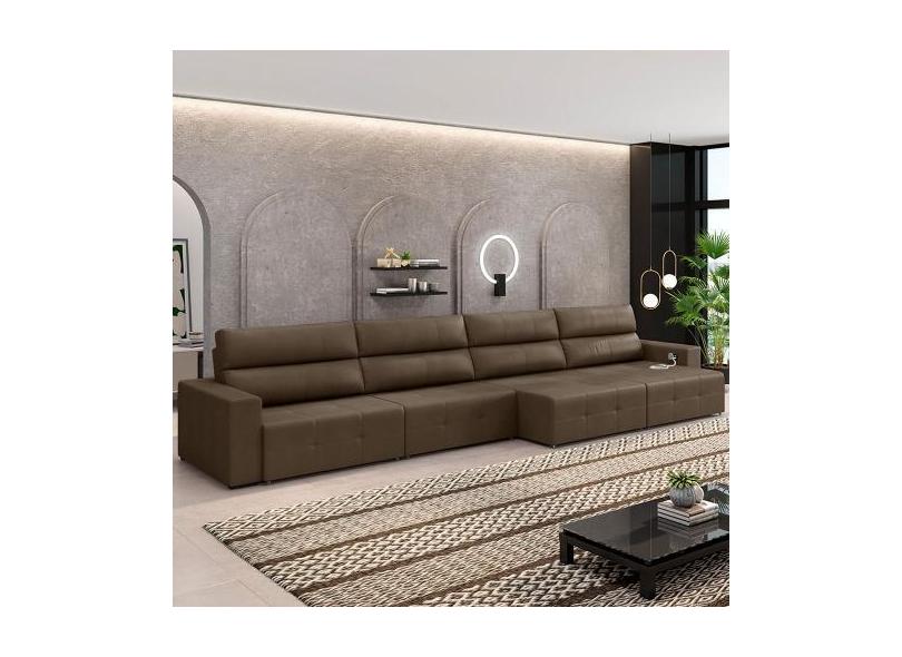 Sofá Retrátil 8 Lugares 524cm 4 Módulos Nero Com Usb Couro Cappuccino