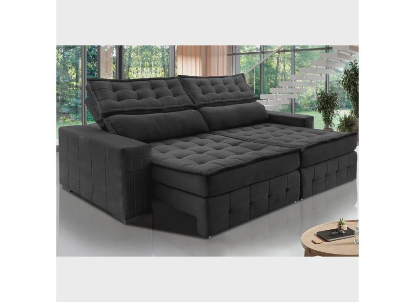 Sofá Retrátil e Reclinável 2,15m Cama inBox Big Puffer com SoftGel D40 Velupluma Preto