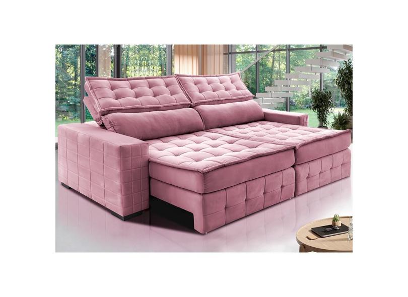 Sofá Retrátil e Reclinável 2,15m Cama inBox Big Puffer com SoftGel D40 Velupluma Rose