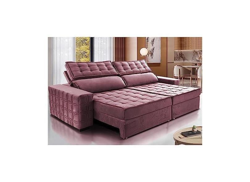 Sofá Retrátil e Reclinável 2,15m Cama Inbox Big Star com Softgeld40 Velupluma Rose
