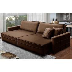Sofá Retrátil e Reclinável 2,50m Karina Veludo Marrom Madelina Decor