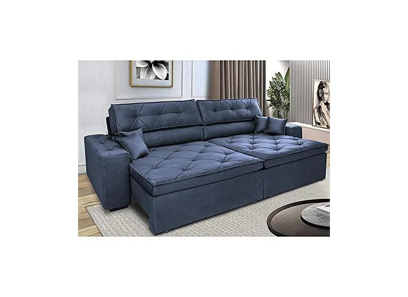 Sofá Retrátil e Reclinável 2,52m com Molas Cama Inbox Estilo Suede Velusoft Azul