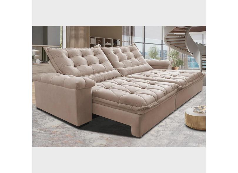 Sofá Retrátil e Reclinável 2,55m Cama inBox Big Fresh com SoftGel D40 Velupluma Bege
