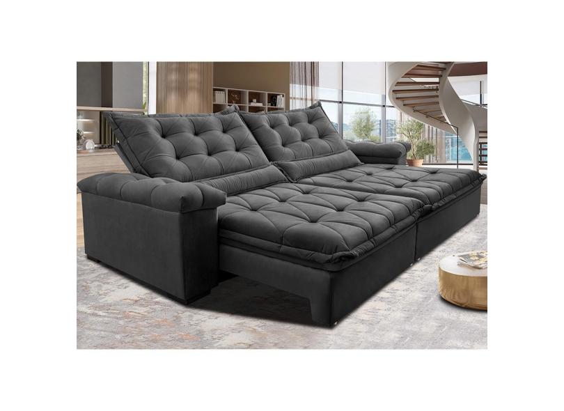 Sofá Retrátil e Reclinável 2,55m Cama inBox Big Fresh com SoftGel D40 Velupluma Cinza