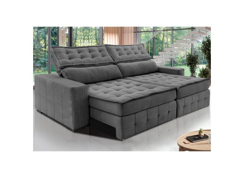 Sofá Retrátil e Reclinável 2,55m Cama inBox Big Puffer com SoftGel D40 Velupluma Cinza