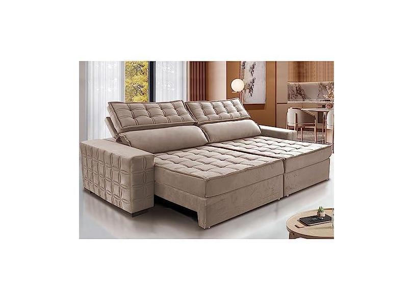 Sofá Retrátil e Reclinável 2,55m Cama Inbox Big Star com Softgeld40 Velupluma Bege