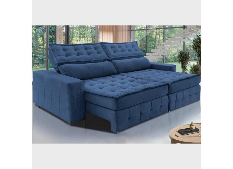 Sofá Retrátil e Reclinável 2,75m Cama inBox Big Puffer com SoftGel D40 Velupluma Azul