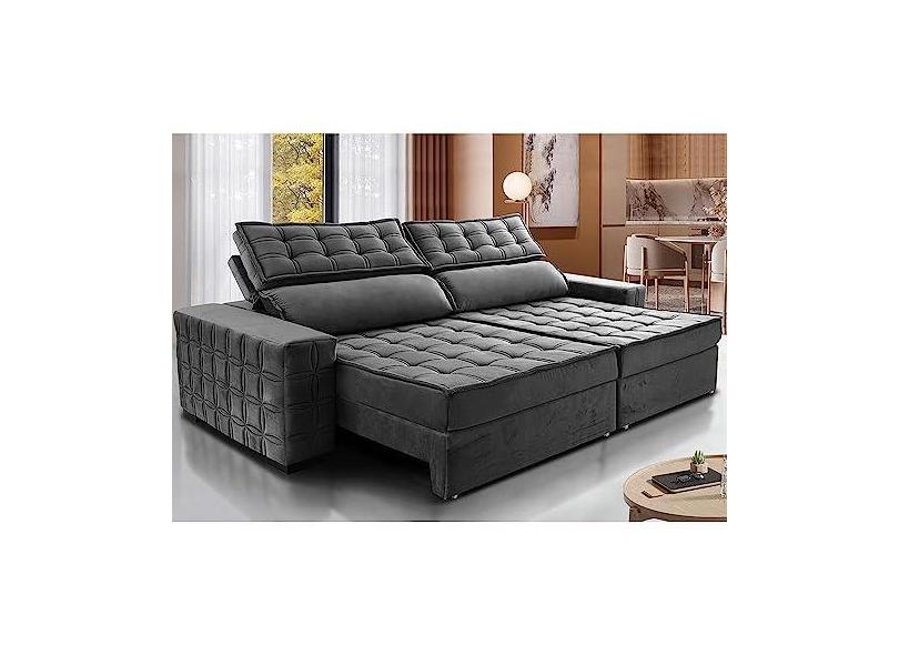 Sofá Retrátil e Reclinável 2,75m Cama Inbox Big Star com Softgeld40 Velupluma Cinza