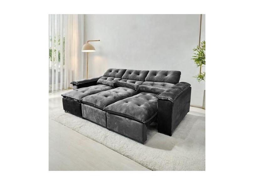 Sofá Retrátil E Reclinável 2,75M Em Tecido Veludo C/ Pillow Nos Braços