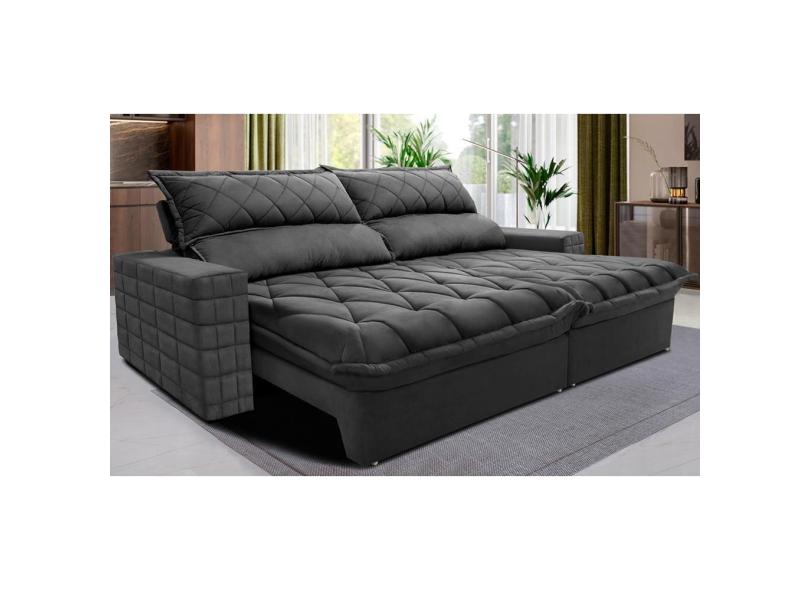Sofá Retrátil e Reclinável 2,75m Molas Ensacadas Cama inBox Elegance. com ThermoGel Velusoft