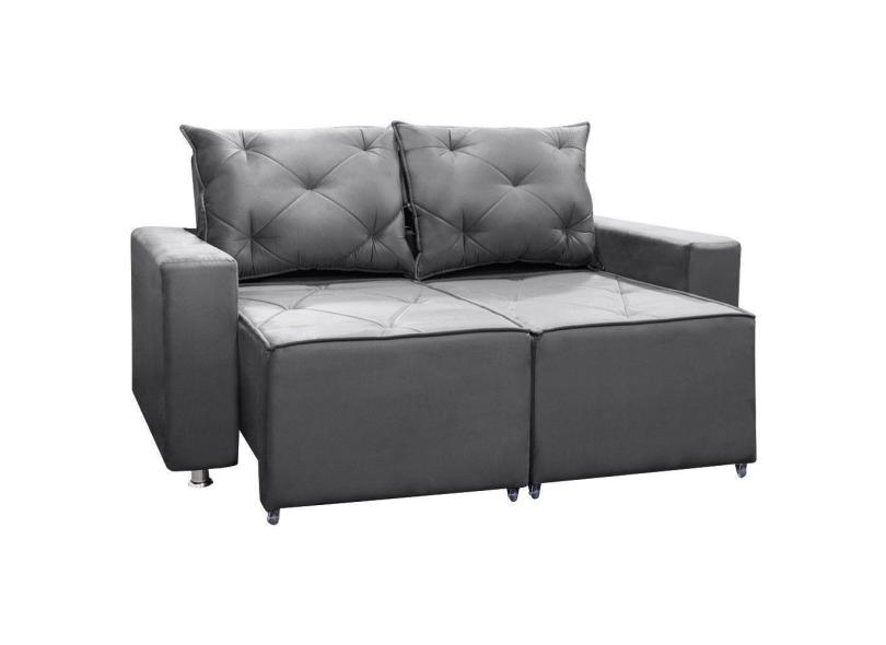 Sofá Retrátil E Reclinável 2 Lugares Bariloche 1.50cm c/ Molas - Veludo Cinza Chumbo