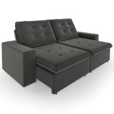 Sofá Retrátil e Reclinável 200 cm Mamflex Monte Carlo 4010 tecido veludo fino Cinza