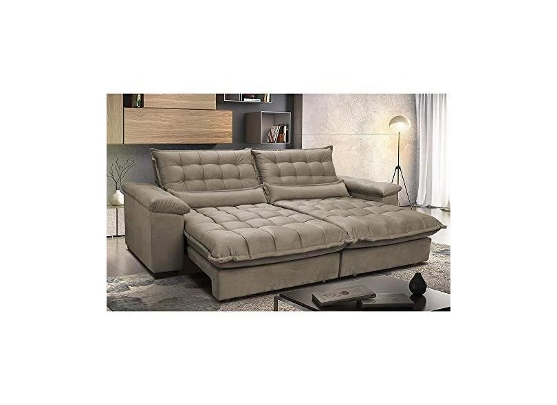 Sofá Retrátil e Reclinável 3,12m com Molas Ensacadas Cama Inbox Aconchego Tecido Suede Castor