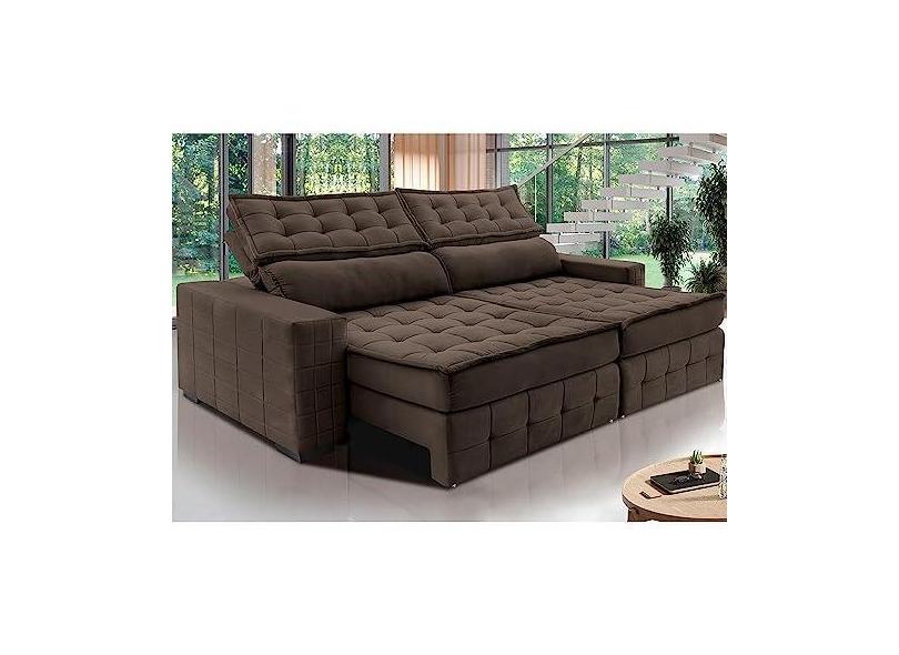 Sofá Retrátil e Reclinável 3,15m Cama Inbox Big Puffer com Softgeld40 Velupluma Café