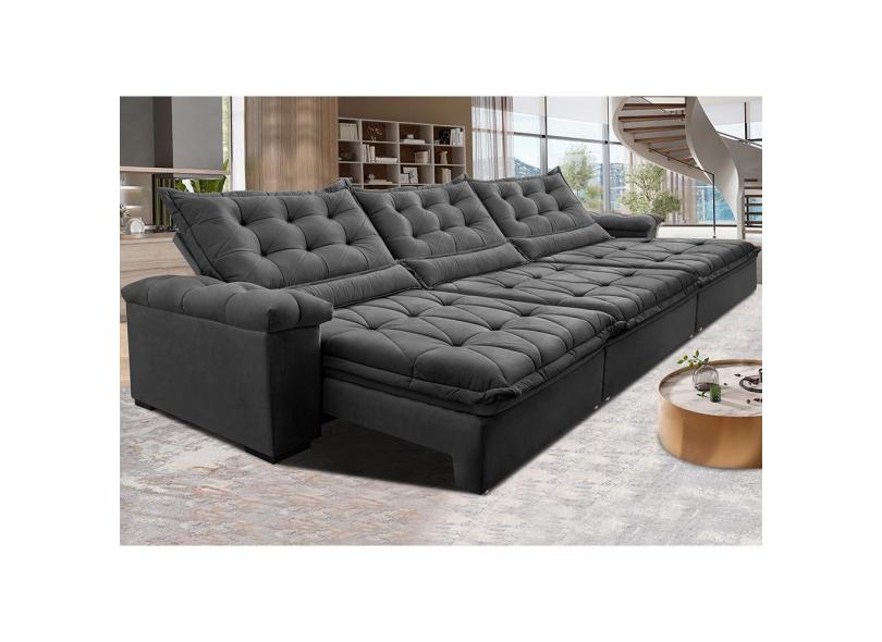 Sofá Retrátil e Reclinável 3,85m Cama inBox Big Fresh com SoftGel D40 Velupluma Cinza