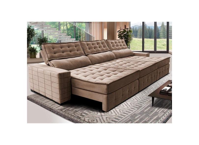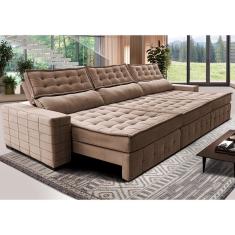 Sofá Retrátil E Reclinável 3,85M Cama Inbox Big Puffer Com Softgel D40 Velupluma Castor