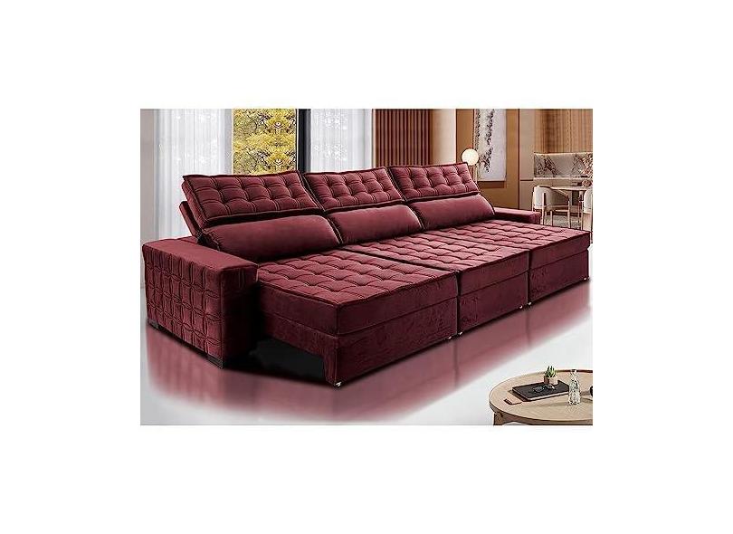 Sofá Retrátil e Reclinável 3,85m Cama Inbox Big Star com Softgeld40 Velupluma Vinho