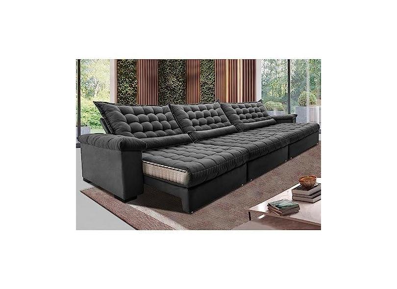 O menor preço encontrado no Brasil para Sofá Retrátil e Reclinável 3,85m Molas Ensacadas Cama Inbox Big Space com Bordado 3d Velusoft Cinza atualmente é R$ 4.999,00.