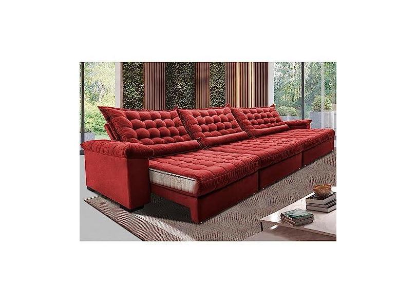 O menor preço encontrado no Brasil para Sofá Retrátil e Reclinável 3,85m Molas Ensacadas Cama Inbox Big Space com Bordado Velusoft Vermelho atualmente é R$ 4.999,00.